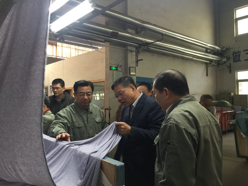 徐紀(jì)平副秘書長等領(lǐng)導(dǎo)到染部車間現(xiàn)場,實地察看了公司生產(chǎn)現(xiàn)場,向公司領(lǐng)導(dǎo)了解了公司今年經(jīng)營情況和轉(zhuǎn)型升級工作。莫總向調(diào)研組領(lǐng)導(dǎo)介紹了公司基本情況和近年來公司推進轉(zhuǎn)型升級工作,特別是今年實施的淘汰落后產(chǎn)能實施智能化生產(chǎn)技改項目。調(diào)研組領(lǐng)導(dǎo)在車間里仔細(xì)察看了公司引進的意大利貝利尼公司生產(chǎn)的超低浴比溢流多功能生態(tài)勻染染色機,以及中央控制室,染料助劑自動化輸送系統(tǒng),對公司實施智能化生產(chǎn)技改的轉(zhuǎn)型升級舉措給予高度肯定,鼓勵公司領(lǐng)導(dǎo)進一步通過轉(zhuǎn)型升級,推動企業(yè)向信息化、自動化、智能化方向發(fā)展,實現(xiàn)節(jié)能減排,減員增效,提高企業(yè)競爭力,促進傳統(tǒng)企業(yè)的新發(fā)展。
