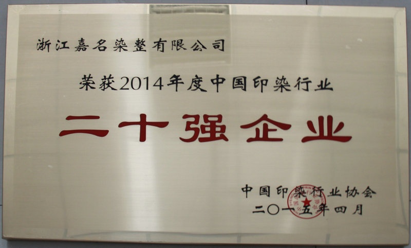 浙江嘉名染整有限公司獲“2014年度中國印染行業(yè)企業(yè)20強” 2015-04-15 00:00:00 浙江嘉名染整有限公司 瀏覽次數(shù) 1365 4月14日下午,在中國印染行業(yè)協(xié)會五屆三次理事擴大會議暨五屆四次常務會議上,浙江嘉名染整有限公司榮獲“2014年度中國印染行業(yè)企業(yè)20強”。 上一條中國印染行業(yè)協(xié)會會長陳志華蒞臨嘉名公司走訪調(diào)研 下一條公司重獲“桐鄉(xiāng)市十大突出貢獻工業(yè)企業(yè)”殊榮